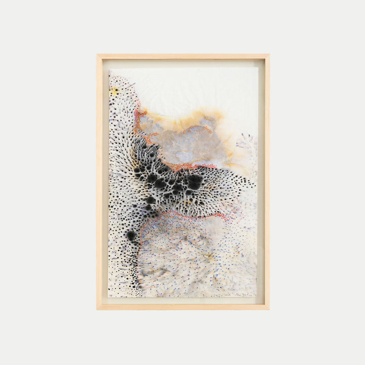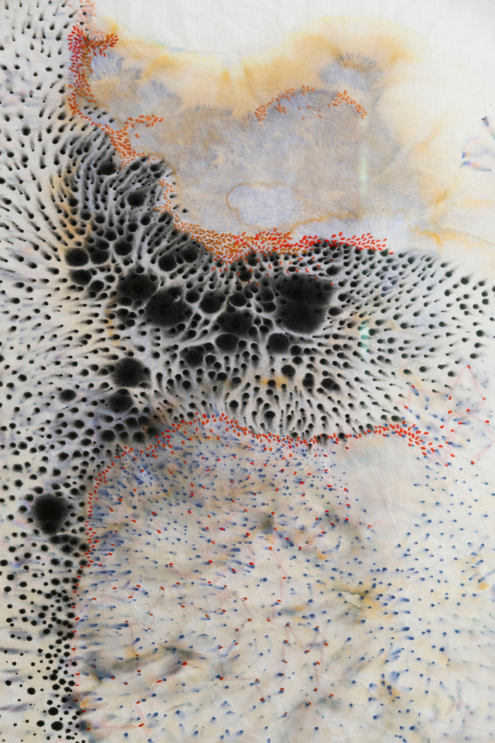 Ink, embroidery, rice paper