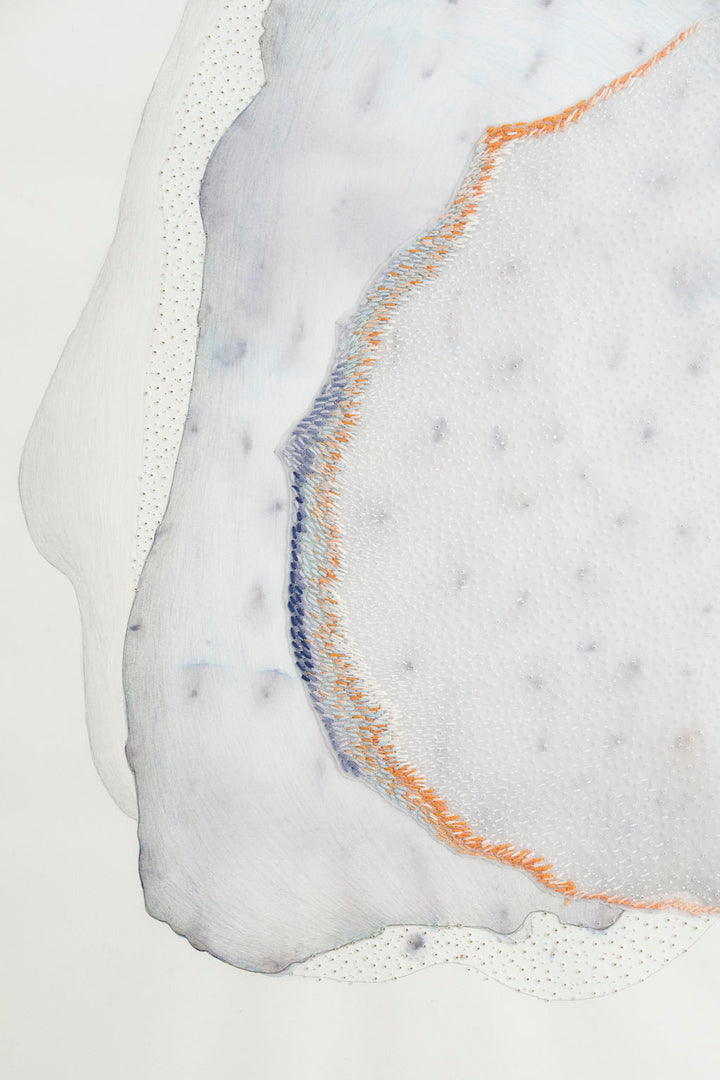 Ink, markers, embroidery, tracing paper, BFK Rives paper