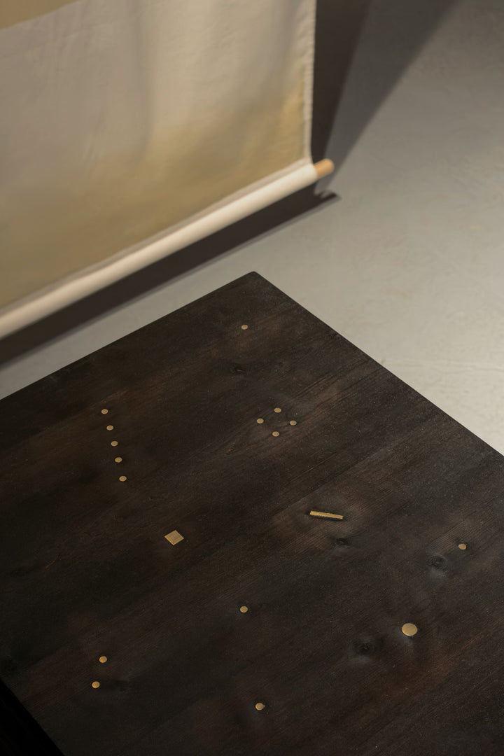 Серия Abyss стала для художника размышлением о конфликте космического и земного. Латунные «созвездия» и «спутники» хаотично разбросаны по черноте деревянной поверхности. Брутальная техника исполнения подчеркивает противоречие между фантазией человечества о космосе и земным началом, напоминая небесный диск из Небры или звездную карту Дуньхуана, древнейшие из сохранившихся в мире изображений звездного неба.