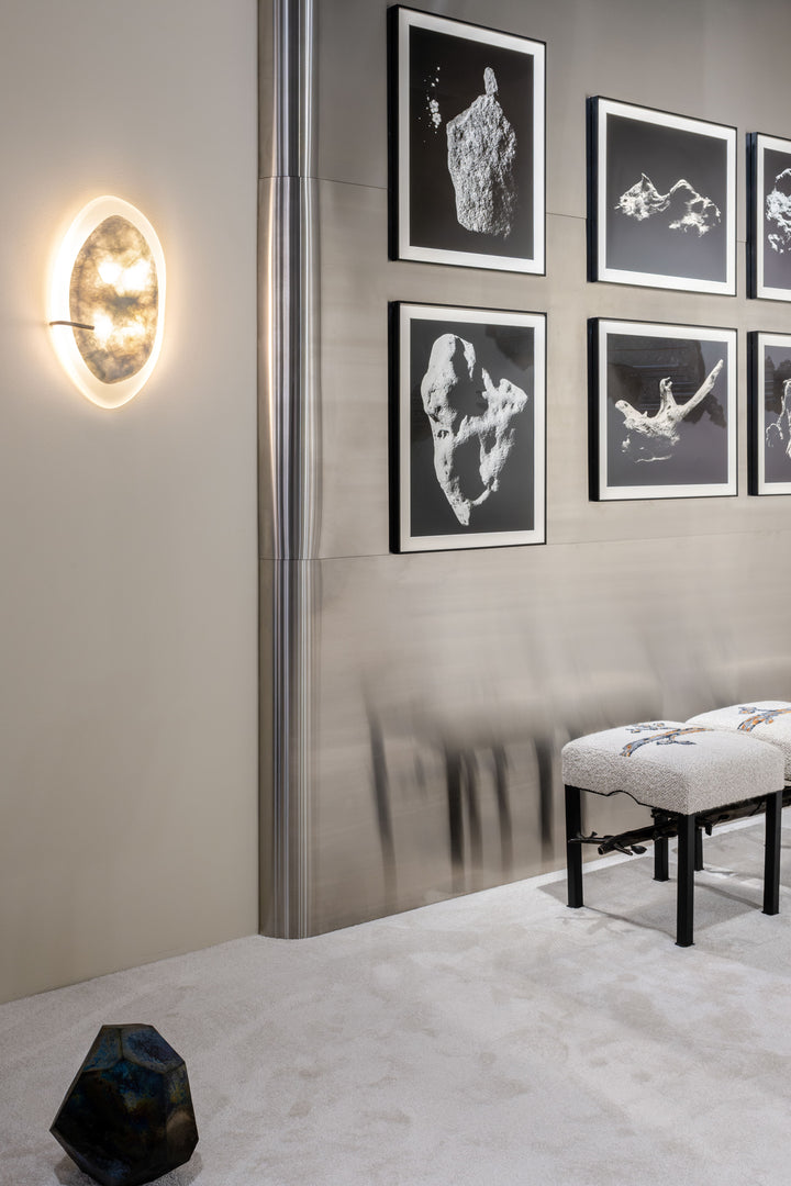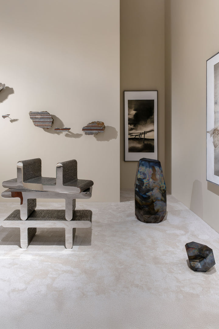 Концепция стенда Booroom Gallery — это пристальное изучение природы камня, медитативный поиск новых смыслов в сочетании природного и рукотворного. Экспозиция построена на резонансе объектов друг с другом, с пространством, с историей. Здесь использованы принципы японской философии любования камнями — приглашение искать мудрость за пределами книг, в элементах и закономерностях природы, и мелочах, которые обычно упускаются из виду. Художники и дизайнеры не навязывают этому тысячелетнему материалу форму, а будто бы позволяют возникнуть ей спонтанно. Через сопоставление камня и его различных состояний с другими медиумами выявляется его красота и универсальность.