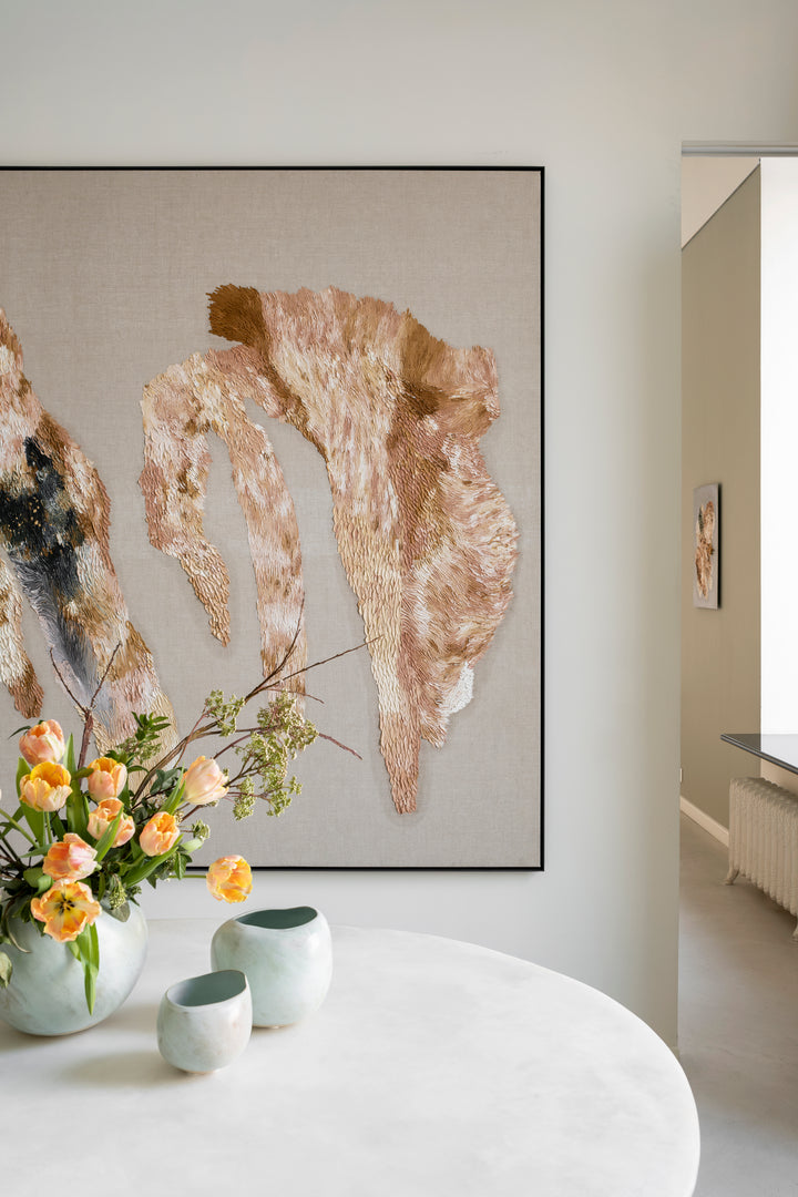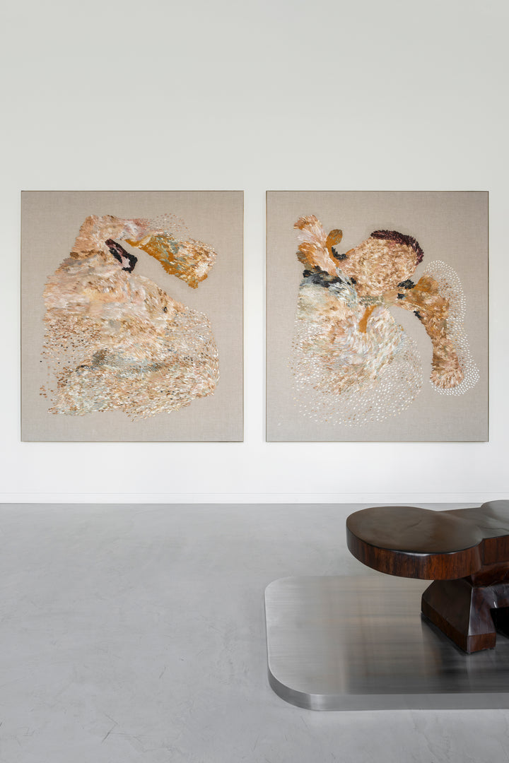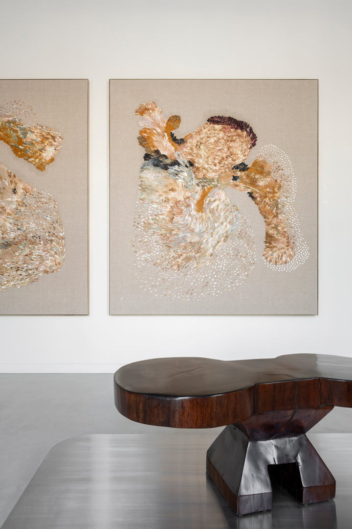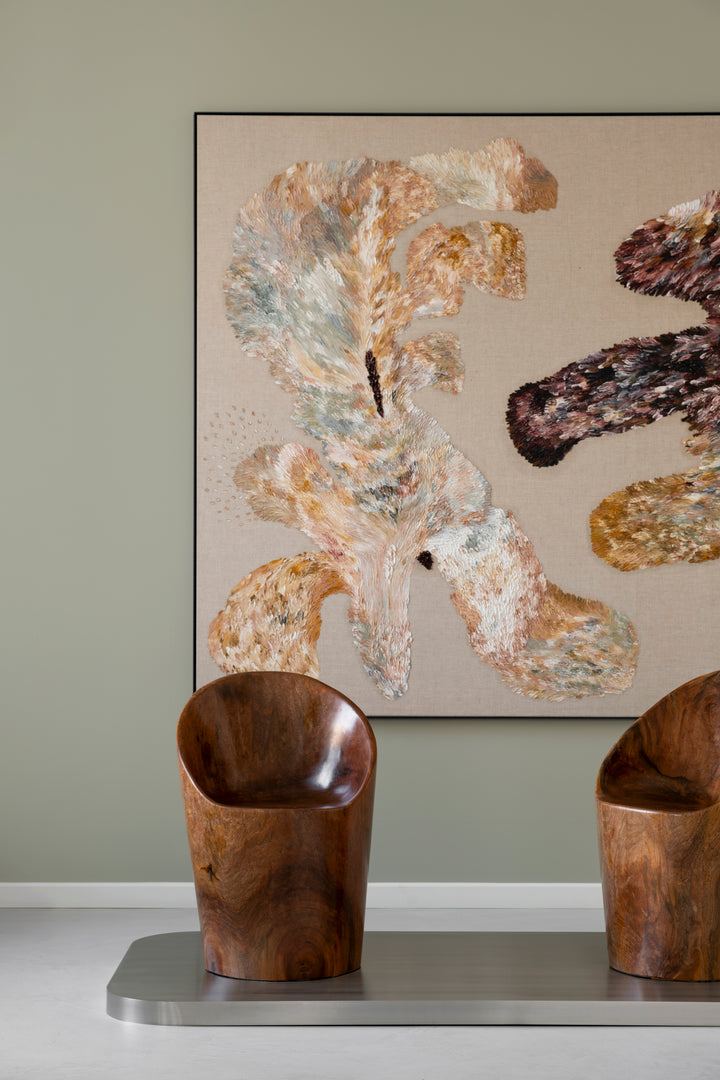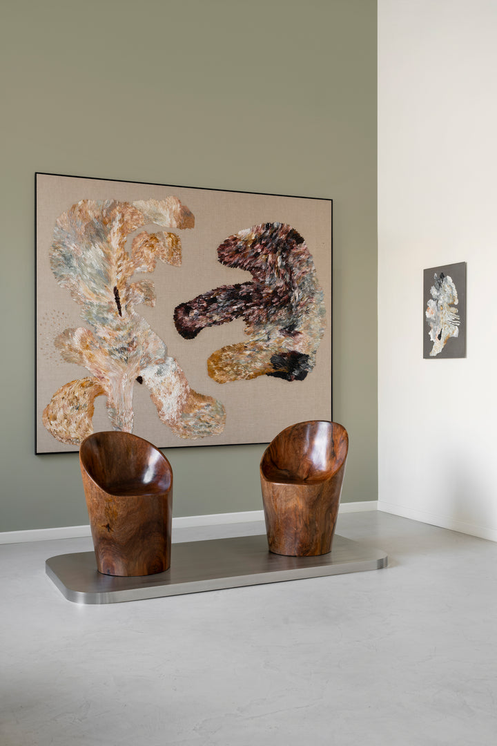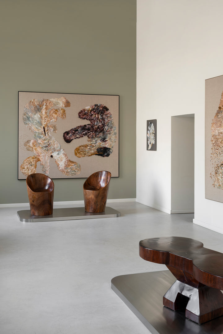 Креслу Namoradeira посвящена вторая центральная работа экспозиции — живописное полотно Zanine Даниэлы Бусарелло, которое она создала как оммаж творчеству Калдаса. Для художницы и архитектора Даниэлы Бусарелло природа и гений места значат не меньше. Как и он, Даниэла родилась в Бразилии и выросла в окружении вечных деревьев тропического леса. Ее работы, посвященные Амазонии, показывают мощь, силу и вместе с тем — хрупкость этой удивительной экосистемы. В основе ее подхода — размышления о связи всего живого, природной и необъяснимой, пронизывающей все вокруг. На выставке представлены работы художницы из серий Inner Landscape, Elapsed Time, Hommage À Courbet, Mar Verde и AnimaMundi, созданные в период с 2017 по 2024 год.