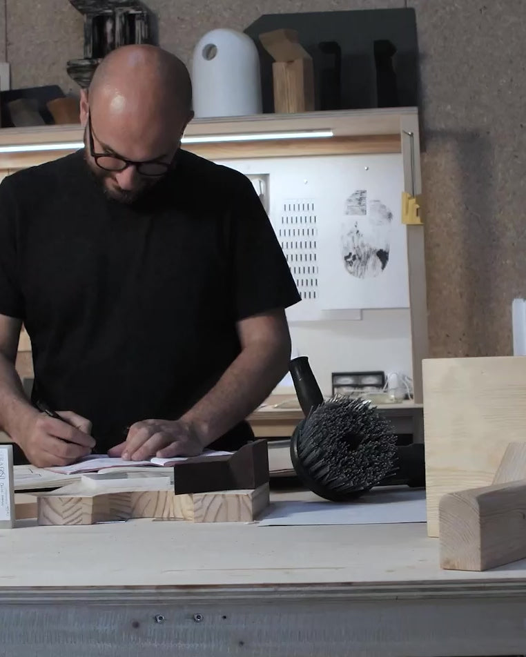 «Материал прочно связывает весь процесс создания, который в свою очередь неразрывен с проектом. Для меня важно подчеркнуть связь между ручной работой, ремеслом и промышленными технологиями. В своей мастерской я изучаю различные методы визуальной поддержки – фотографию, 3D-работу, письмо, рисунки и прототипирование. Скетчинг — это метод, который я использую чаще всего. Я создаю коллекции мебели и предметов, и при этом очень важно иметь единый пластический и эстетический подход. Каждая форма и цвет — это отголосок коллективной памяти каждого человека», — говорит Калпакян, — «Дерево и камень особенно важны для меня — в них есть двойственность и многообразие. Оба этих материала - теплый и холодный — могут быть использованы в процессе ЧПУ, а также в ремесленных техниках. Оба прекрасно подходят для различных по масштабу проектов».
