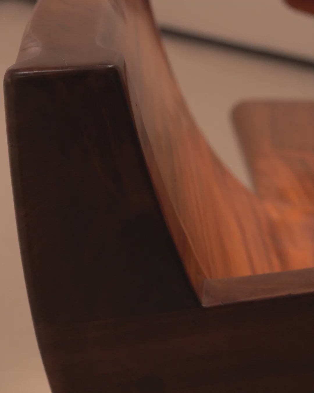 Кресло Canoa относится к серии мебели протеста, над которой Хосе Занин Калдас работал в 1970-е годы. Редкий памятник бразильского модернизма, оно передает суть подхода Калдаса. Серия «Мебели протеста» родилась в сотрудничестве с мастерами-изготовителями каноэ. Занин Калдас предложил им применить иначе свои знания, невостребованные в эпоху индустриализации, и напра- вить их на производство мебели, используя навыки работы с деревом, которыми они так хорошо владели. Их сотрудничество выводило первый план выходило твор- ческое начало и уникальные умения каждого, кто прика- сался к материалу. Визионерский проект создан с уважением к локальному контексту и с пониманием истории места.