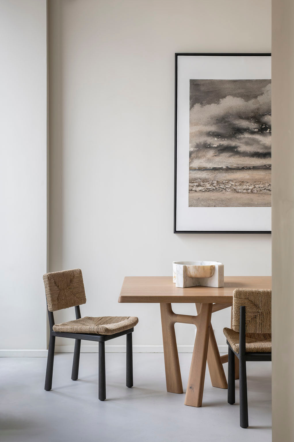 В основе работ Шевалье — стремление найти баланс между западным разумом и китайской мыслью, признающей непостоянство жизни. Соединяя две различные техники, она наносит тушь на холст с помощью пигментов, песка и коллажа. Художница практически не использует искусственные материалы. Она черпает вдохновение в пяти природных элементах согласно китайской философии У-син: огонь помогает создать чернила, которые получаются из древесной сажи, они проявляются во взаимодействии с водой, а затем их дополняют кварцевый песок, охристые земляные пигменты и другие природные элементы, наклеенные прямо на холст: травы, листья деревьев. Сами пейзажи подчеркнуто минималистичны: бескрайние просторы земли или неба, облака, русла рек, скалы и галька.