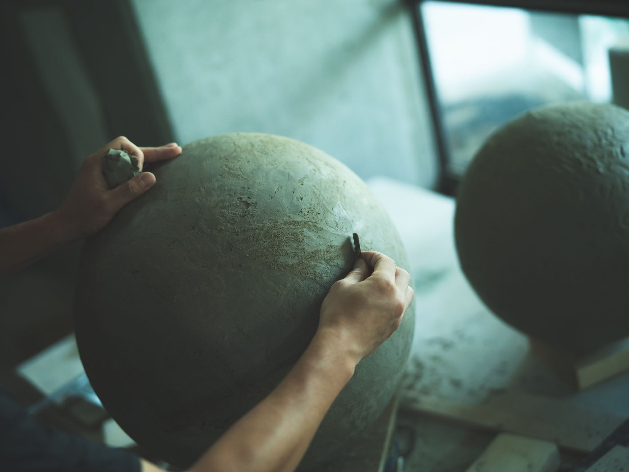 Шероховатая структура этих скульптур, напоминающая гречневую шелуху, получается в процессе многослойного обжига — она основана сразу на нескольких традиционных японских способах работы с глиной: эффекте «цути» и типе керамики «сето яки». При этом в печь для обжига, которую художник каждый раз создает заново для каждого объекта, действительно засыпается гречневая шелуха.