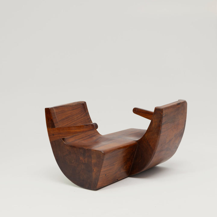 Кресло Namoradeira создано в главный период творчества Хосе Занина Калдаса, годы его работы над «Мебелью протеста». Кресло тет-а-тет невероятно поэтично: оно показывает всю мощь и силу природы амазонских лесов, но вместе с тем его форма — настоящее воплощение баланса. Редкий предмет коллекционного дизайна, оно служит выразительной метафорой его жизненного пути. Калдас также умел балансировать между течениями, следовал своей страсти, своему ощущению правильности личного выбора, оставался верен себе, работая там, где чувствовал необходимость.